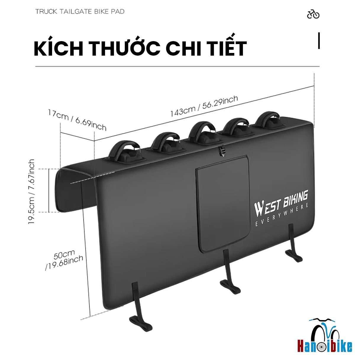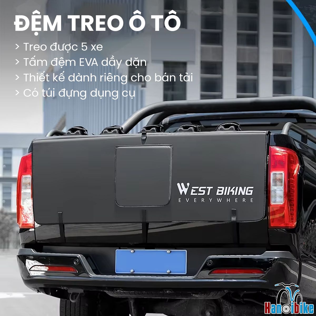 Đệm treo xe đạp West Biking 84370 là lựa chọn lý tưởng để vận chuyển lên đến 5 xe đạp trên cửa sau xe bán tải, bảo vệ xe đạp và xe ô tô khỏi trầy xước, đồng thời tiện lợi cho các chuyến đi dã ngoại hoặc vận động ngoài trời