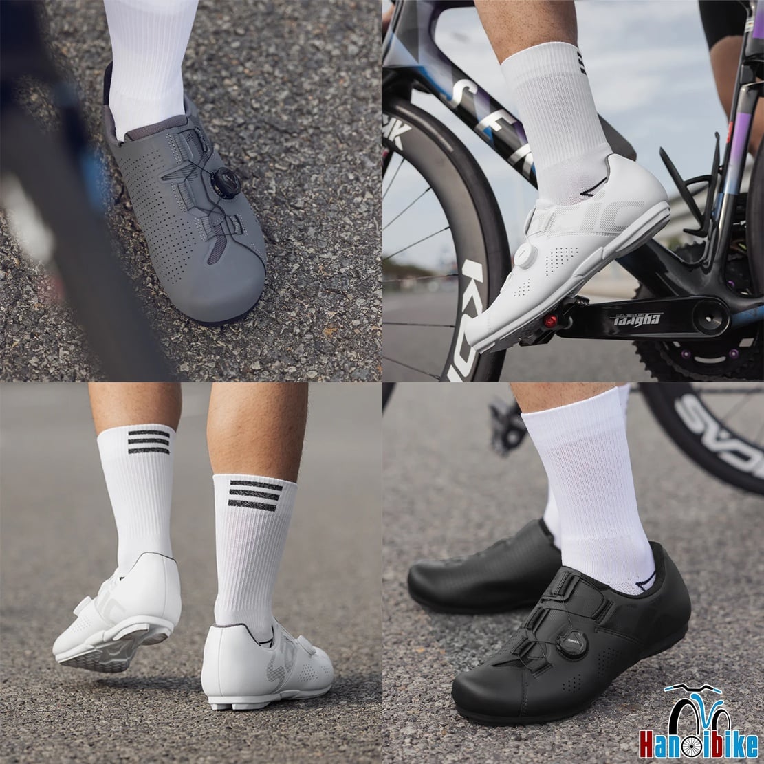 - Đế: VIBRAM® Rubber + TPU Hybrid Outsole – êm ái khi đi bộ, truyền lực tốt khi đạp.