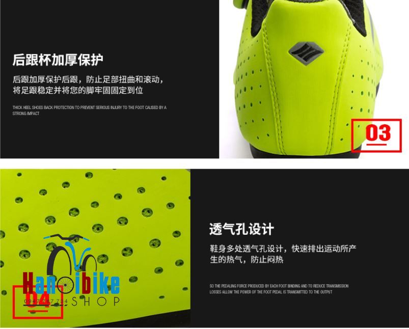 - Đế giày cao su cứng chống trơn trượt giup người sử dụng đạp xe hiệu quả hơn không mất sức do đế giày cứng