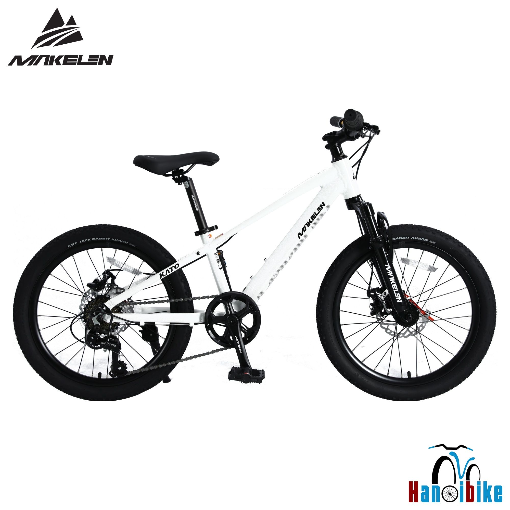 | Xe đạp địa hình MTB Makelen Kato bánh 20 inch • Khung: Nhôm hợp kim 6061 T6, dây đi âm sườn • Phuộc: Nhôm có khóa hành trình • Tay đề: Shimano RV200, vặn xoay, 7 tốc độ • Củ đề sau: Shimano RD-TZ31 • Đùi đĩa: Nhôm 36T, 140mm • Líp: Shimano 14-28T, 7 tầng • Xích: 7 tầng • Ghi đông/Potang/Cọc yên: Nhôm • Chén cổ: NECO • Trục giữa: Cốt vuông bạc đạn • Phanh: Phanh đĩa cơ, 160mm • Vành: Nhôm hai lớp, tháo lắp nhanh • Lốp: CST 20*2.1 • Yên: Yên thể thao HÌNH ẢNH CHI TIẾT SẢN PHẨM