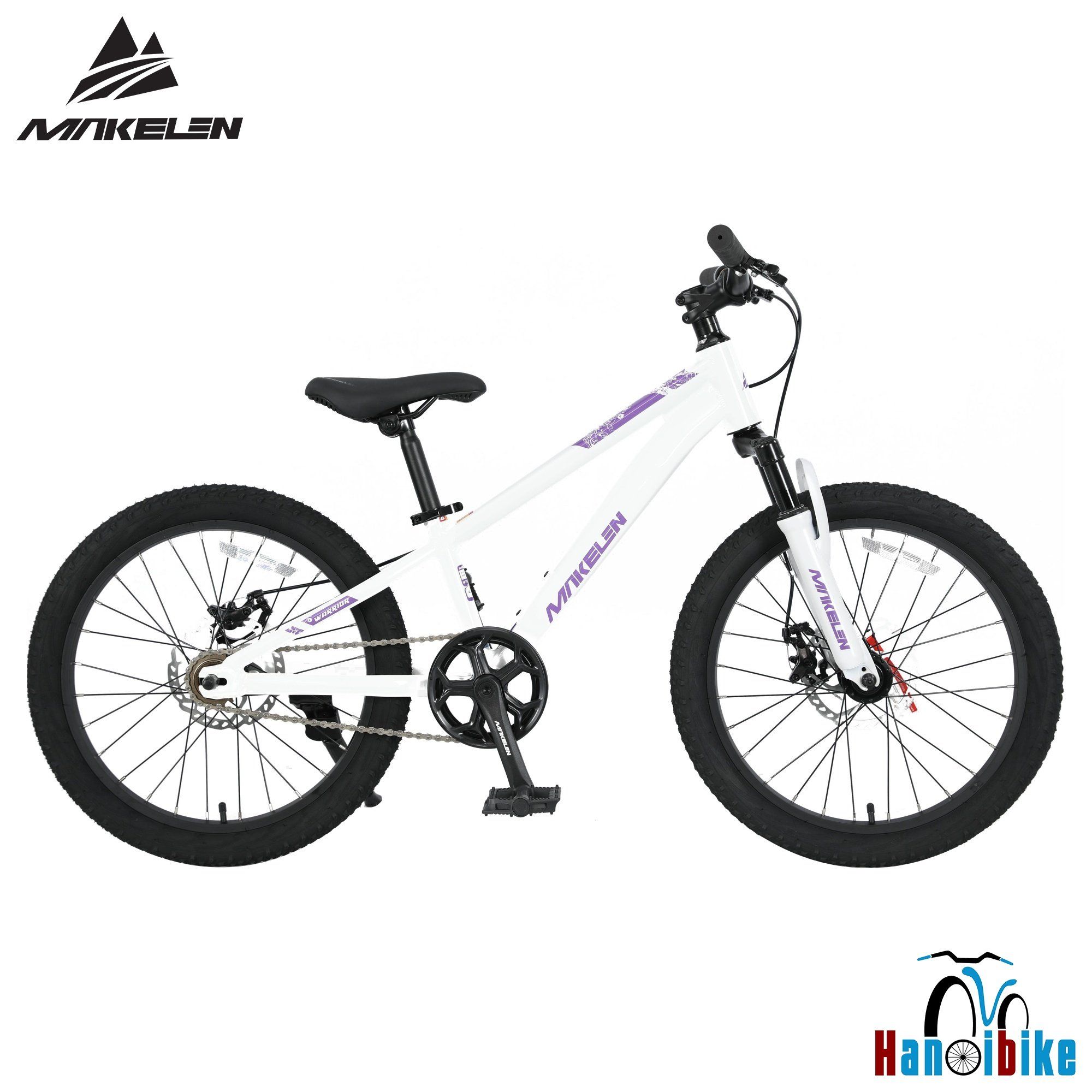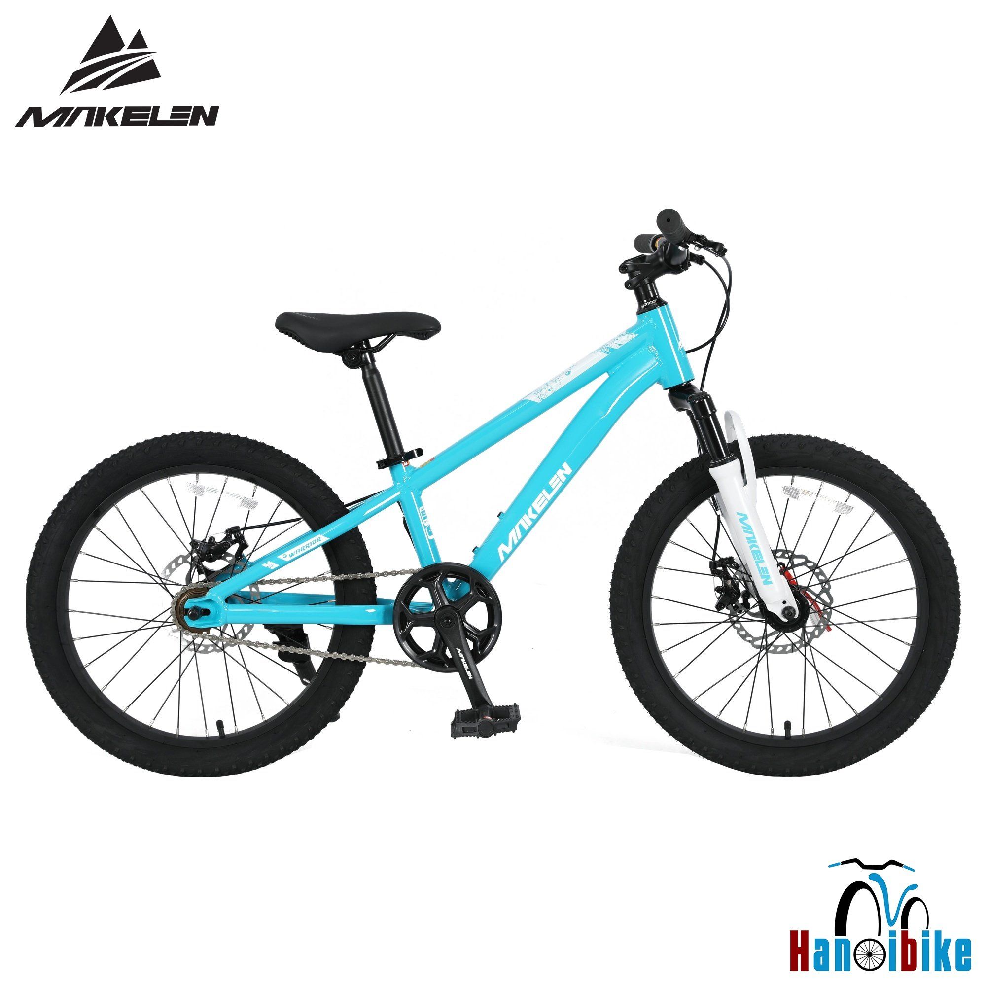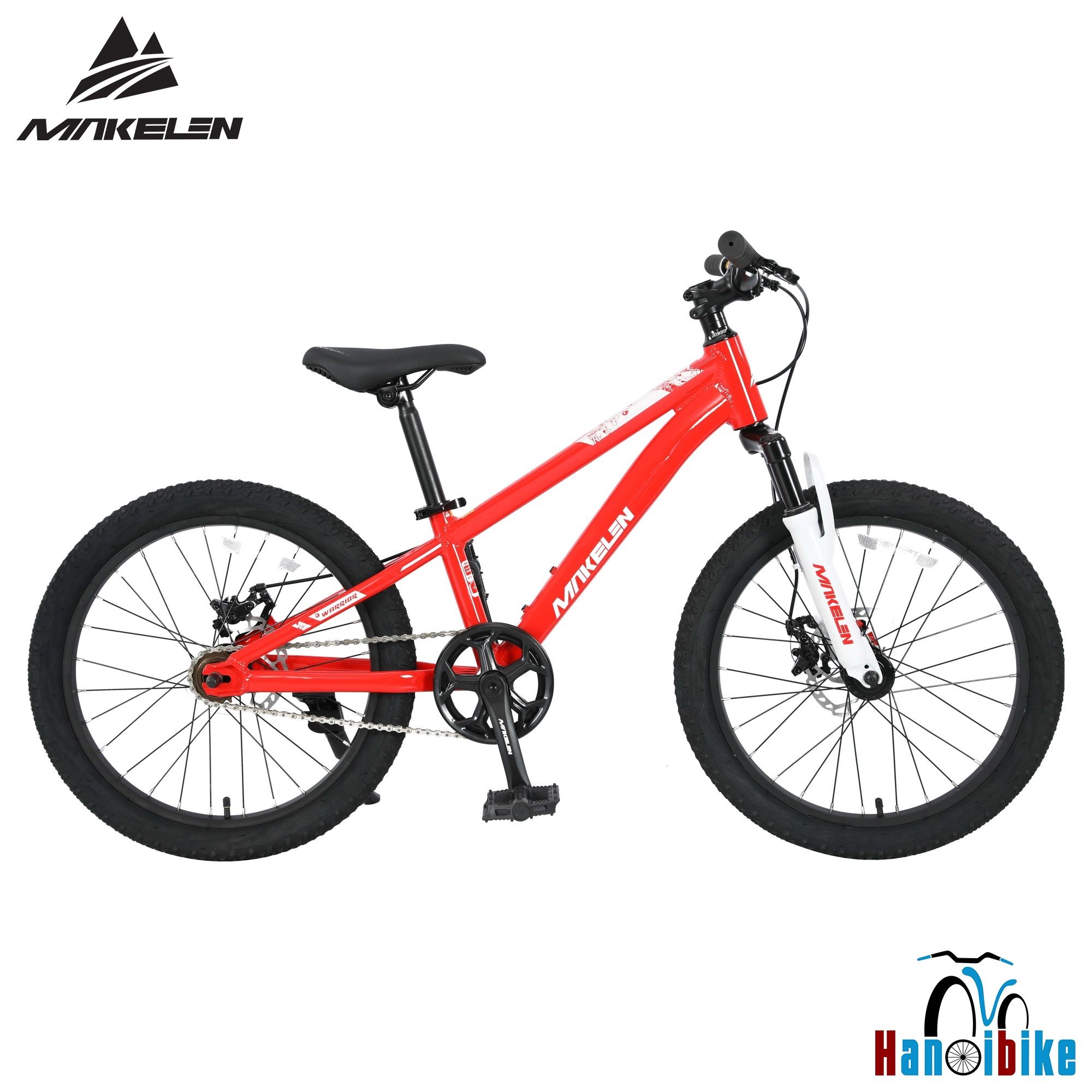 | Xe đạp địa hình MTB Makelen Warrior bánh 20 inch • Khung: Hợp kim nhôm MAKELEN 6061 T6, đi dây âm • Phuộc: Giảm sốc vai thép • Líp: 1 tốc độ, 16T • Xích: KMC • Moay (Hub): Nhôm bạc đạn, phanh đĩa 6 ốc, bánh trước có ty bật tháo nhanh • Bộ phanh: Phanh đĩa cơ, đĩa phanh 160mm • Vành: Vành hợp kim nhôm • Lốp: 20x2.2 • Ghi đông/Potang: Nhôm • Chén cổ: NECO • Cỡ bánh: 20 inch HÌNH ẢNH CHI TIẾT SẢN PHẨM:
