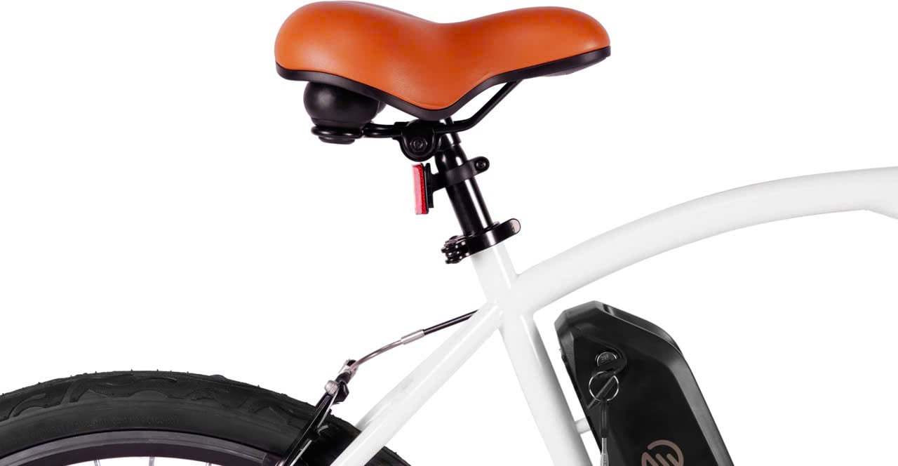 The FLEET’s throttle places the power of a 500W motor at your fingertips. The vegan leather detailing and plush saddle make for a comfy ride, while the detachable, rechargeable battery gets you going with ease. Our FLEET electric bicycle is best fit for most riders 5’7” and up.