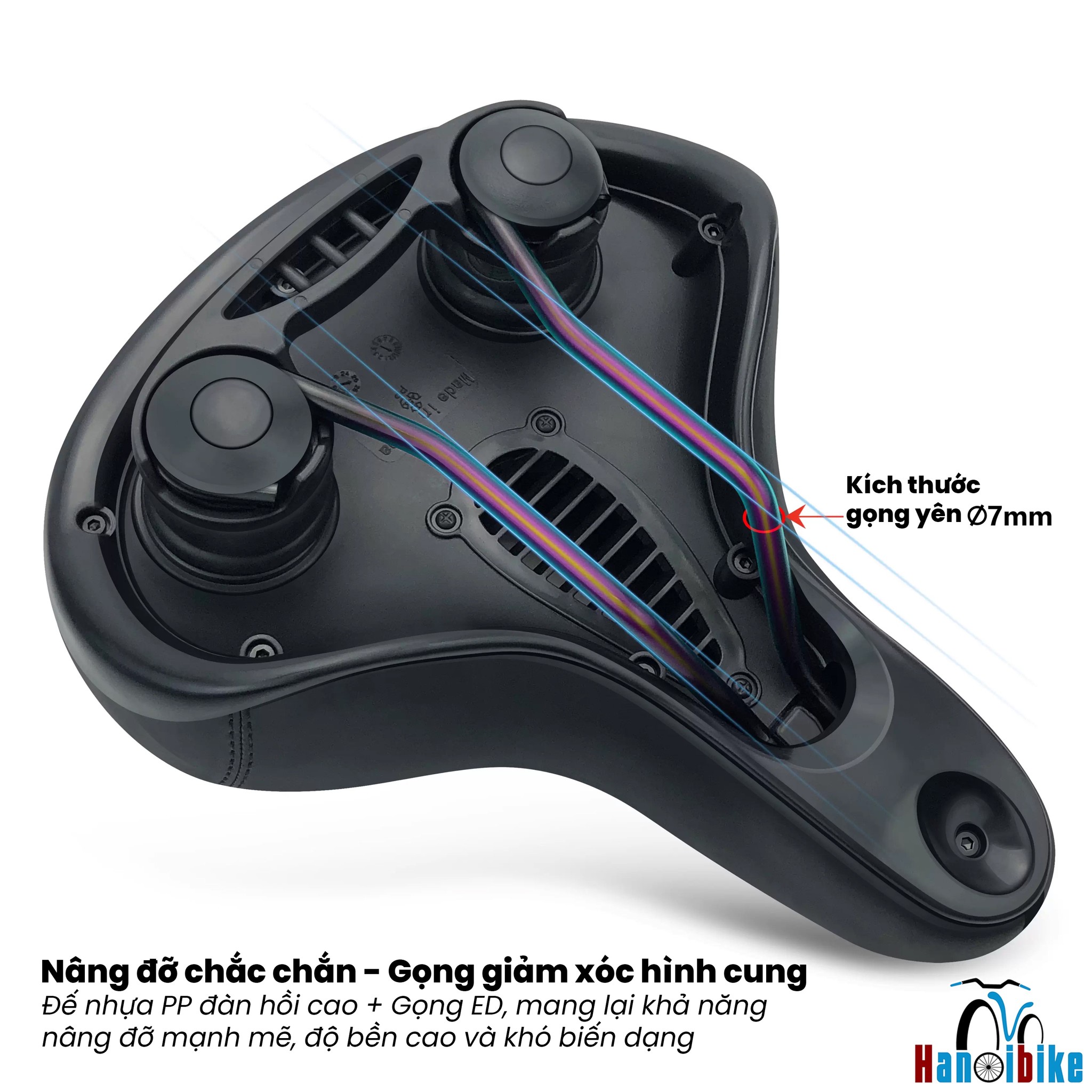 Cốt yên chắc chắn: Khung đáy làm từ nhựa PP độ đàn hồi cao kết hợp gọng thép ED chịu lực tốt.